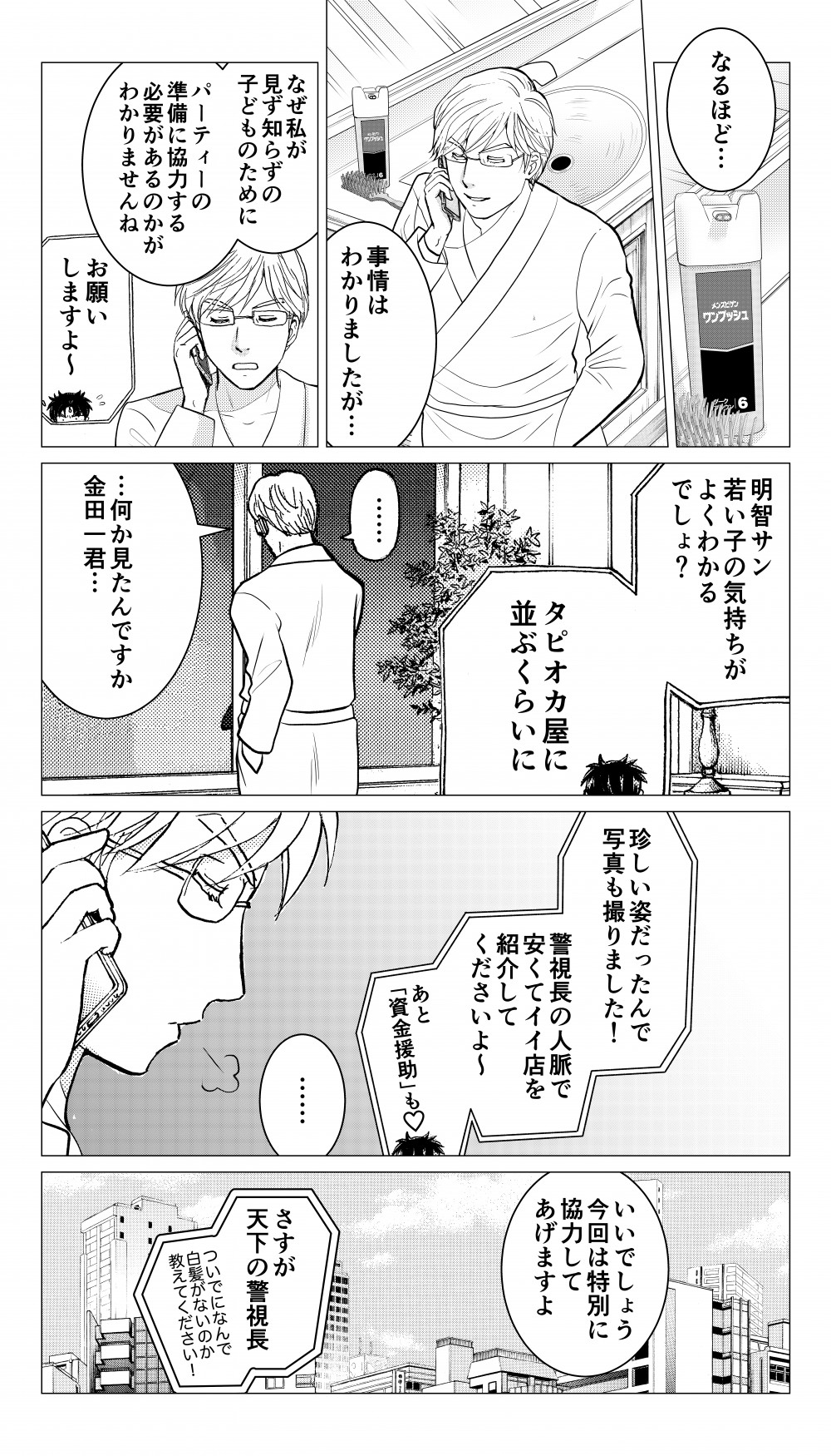 - 30代からの自宅でケアできる白髪染め(男性用)を訴求するための企画。 金田一少年の事件簿から20年.....帰ってきた金田一は37歳になっていた!ということで、そろそろ白髪も気になる年齢に。 相変わらず事件に巻き込まれながら、自分の姿を見つめなおす金田一のストーリーを、全編コマ組み換えマンガで制作。