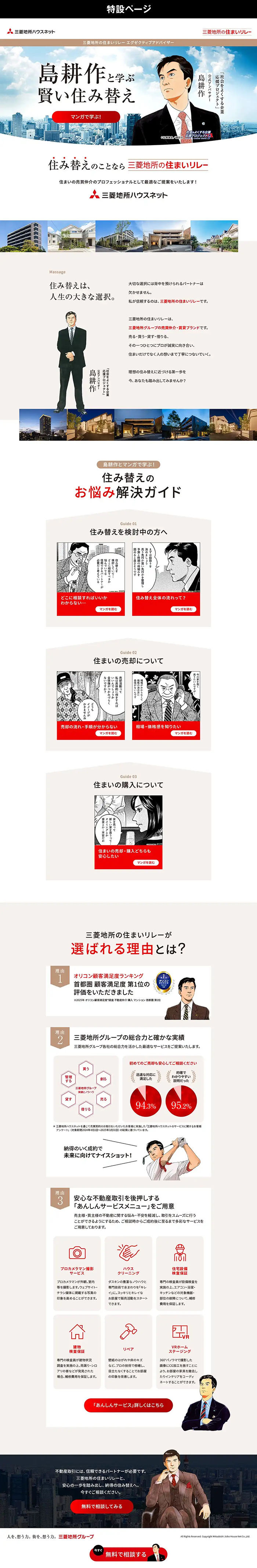 実績豊富な島耕作のキャラクターイメージで「三菱地所の住まいリレー」ブランドの信頼性を高める訴求をした。